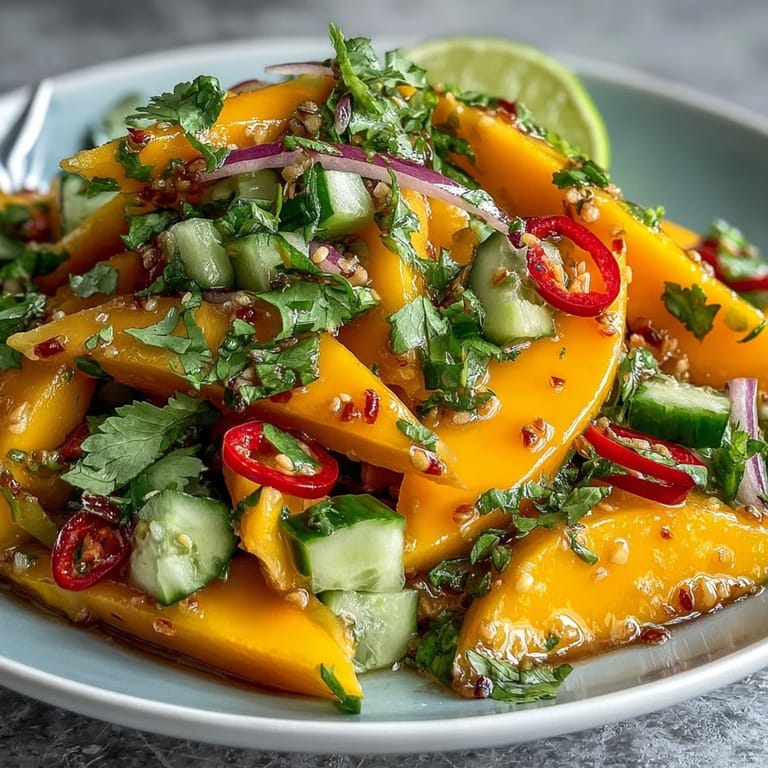 Swap the cilantro for mint if you want something cooler and less divisive. Add a handful of toasted peanuts right before serving for crunch that does not go soggy. If you want protein, toss in cooked shrimp or shredded chicken, both soak up the dressing beautifully. I have also used peaches instead of mango when summer stone fruit is at its peak, and no one complained.